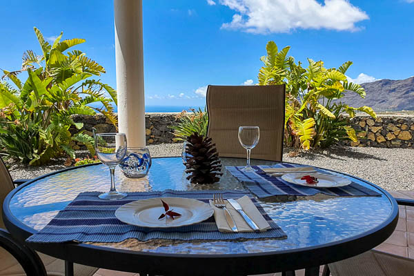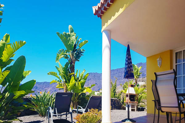A covered terrace, a very well-maintained garden with built-in barbecue and a beautiful, completely unobstructed view over the Aridane valley and to the sea. Guests of the four Los Lomos villas have access to an approx. 10 x 4 m swimming pool and a sunbathing lawn.